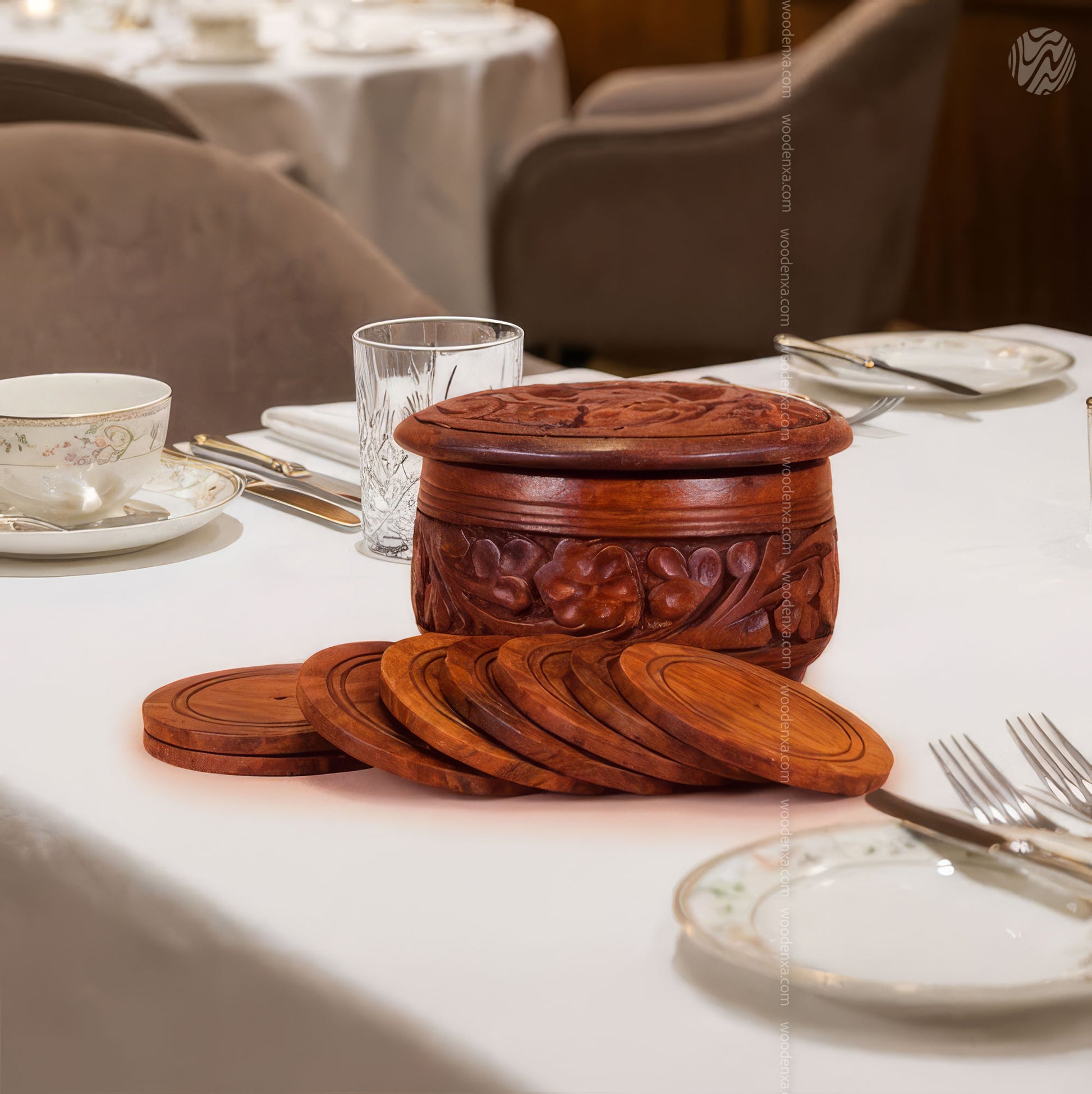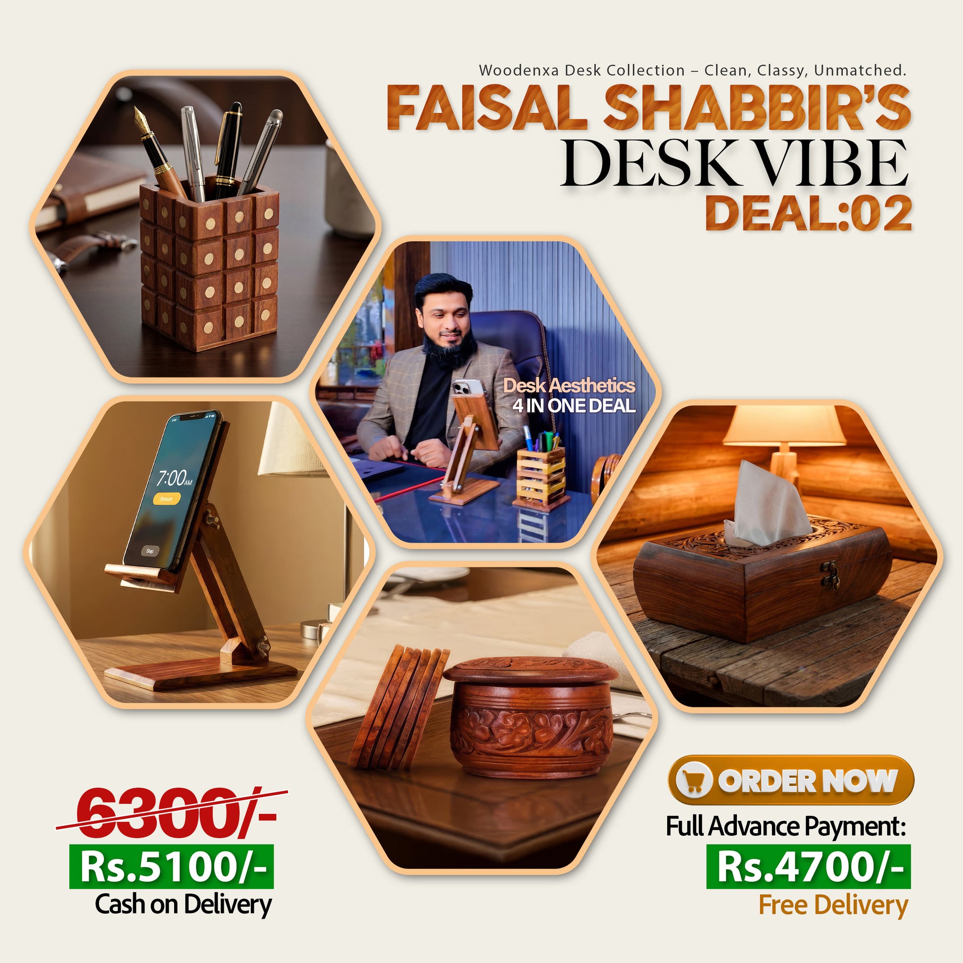 - Premium wooden set with Pen Holder, Mobile Stand, Tissue Box & Tea Mate