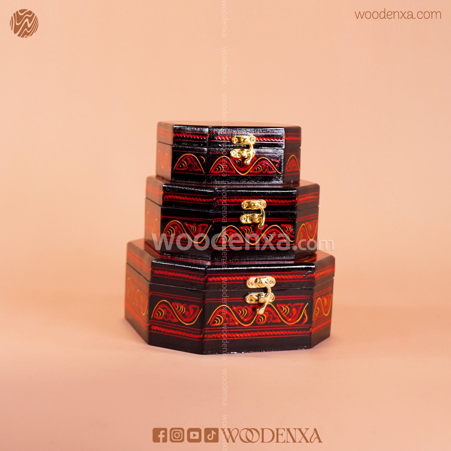MDF Wooden Jewellery Box Set of 3 – Red Naqshi Art | Handmade by Woodenxa
