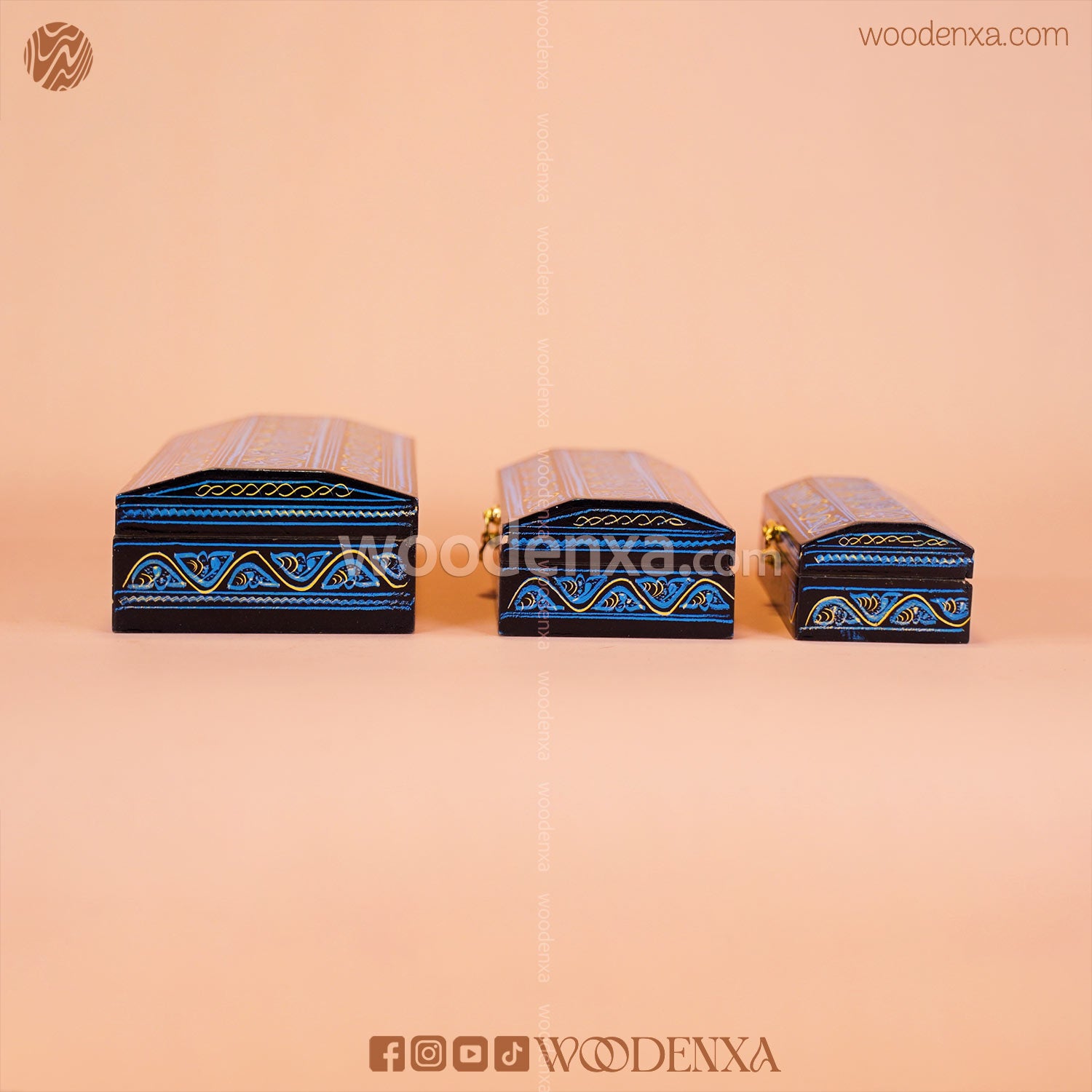 MDF Wooden Jewellery Box Set of 3 – Handcrafted with Blue Naqshi Art | Woodenxa