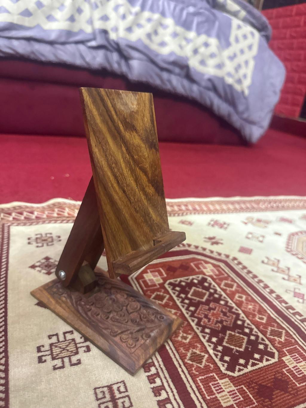 Keep your smartphone steady and your space elegant with this Wooden Adjustable Mobile Stand. Crafted from solid wood, it offers lasting durability while adding a natural, warm touch to your desk, bedside table, or office space.