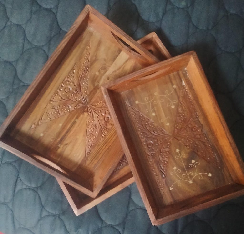 Built to be strong, durable, and practical for daily use, this tray set combines traditional wooden artistry with modern functionality. Whether you're hosting guests or styling your living area, these trays bring a classic touch to any setup.
