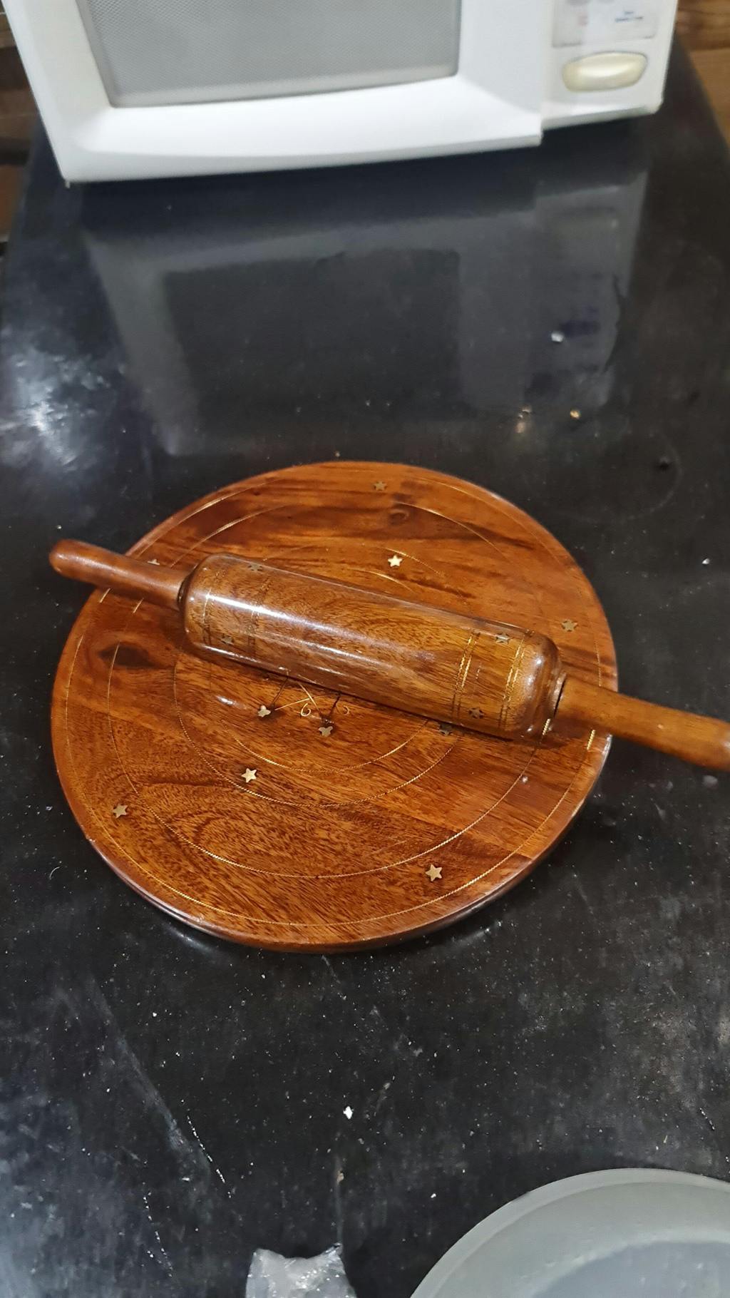 - Wooden chakla belan with brass inlay work