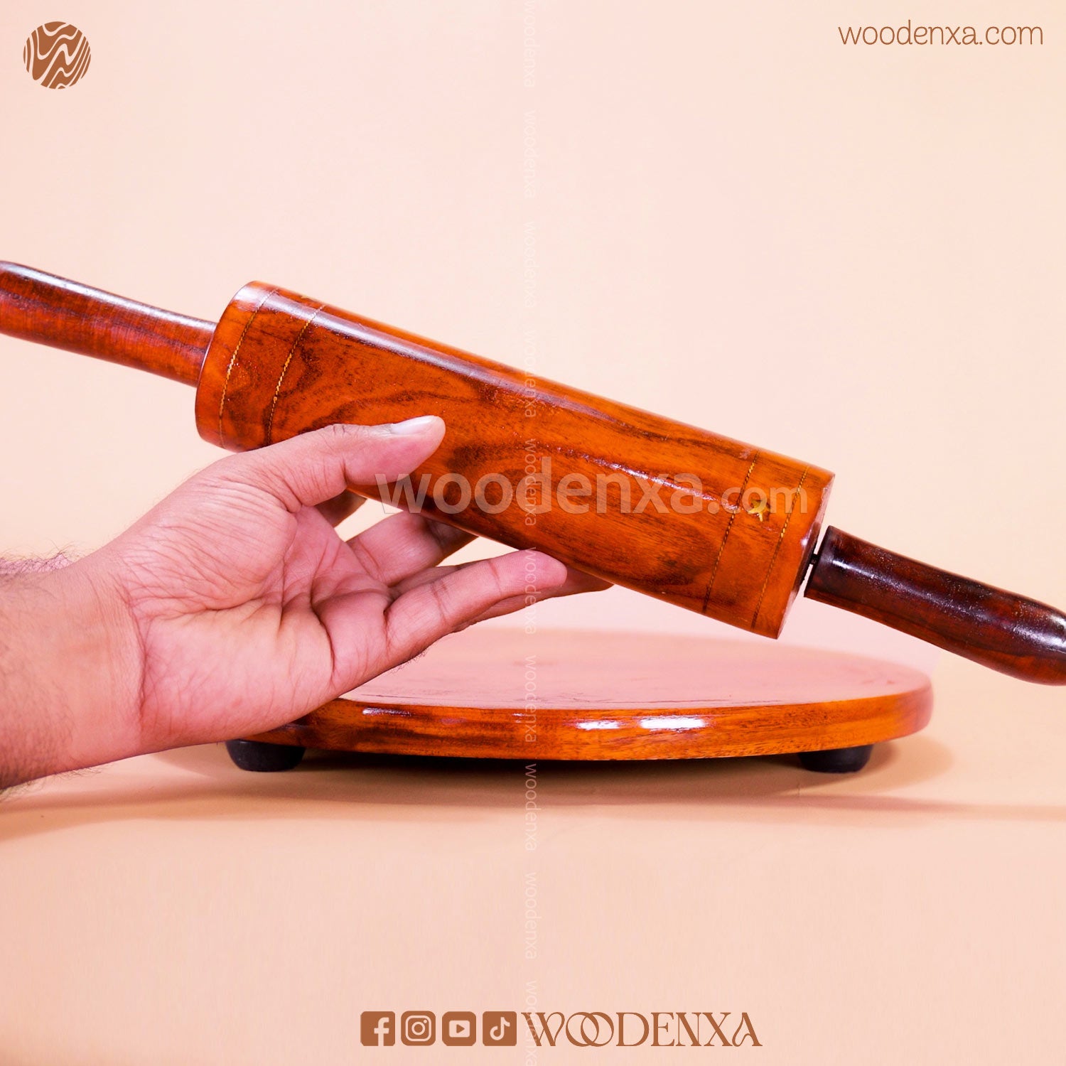 Wooden Chakla Belan Roti Maker with Brass Work | Handmade by Woodenxa