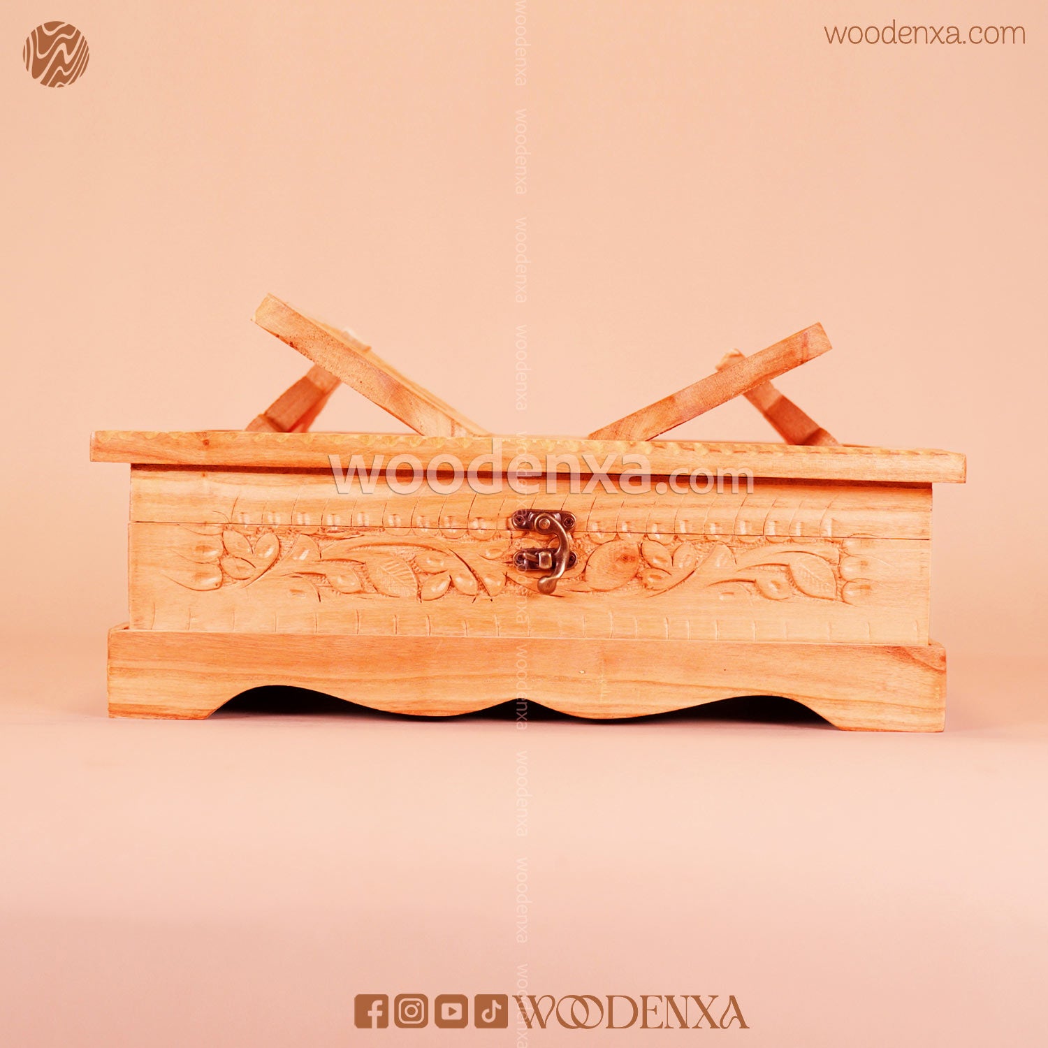 Wooden Quran Box & Rahel 2 in 1 – Neem Wood Handcrafted Carving | Woodenxa