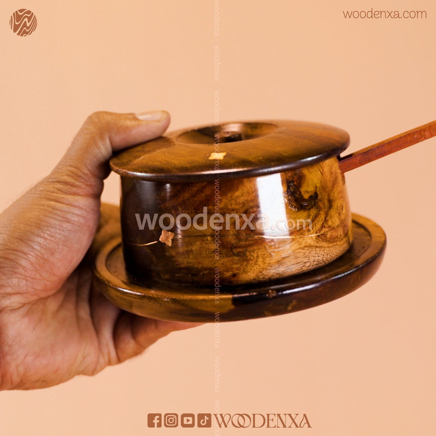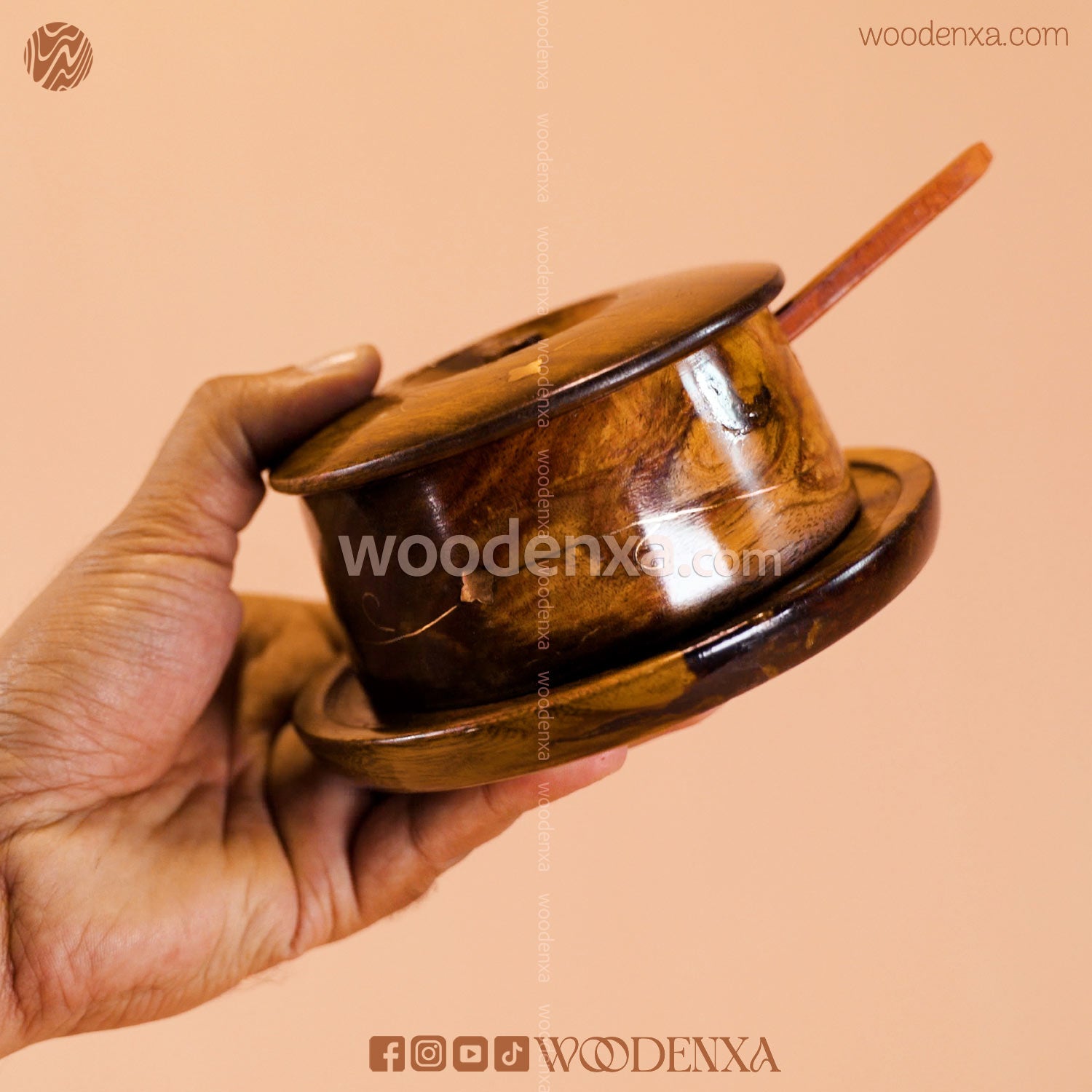 Handcrafted Wooden Sugar Pot with Spoon & Plate | Premium Sheesham Wood Finish by Woodenxa