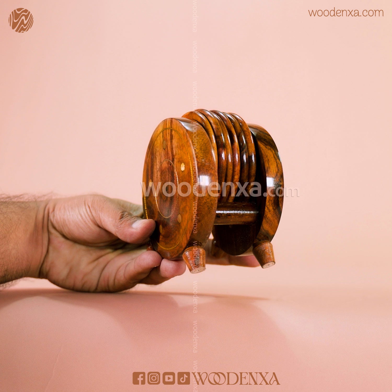 Handmade Wooden Tea Mates Set Stand with Brass Work | Woodenxa