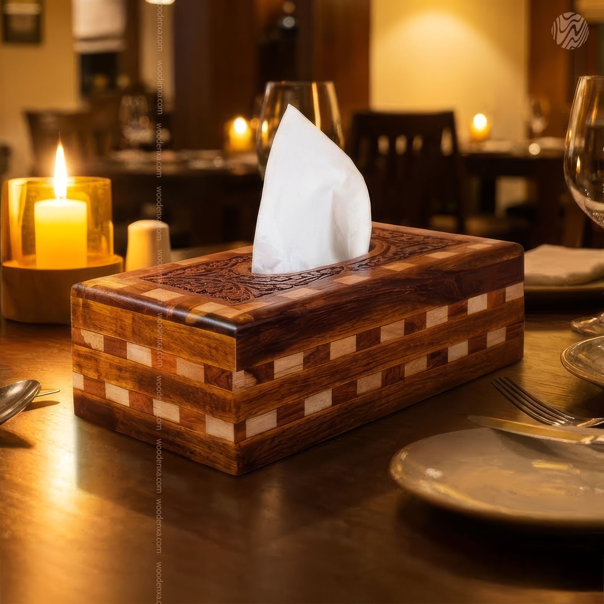 Wooden Tissue Box Tukri Design | Rustic Handmade Aesthetic by Woodenxa